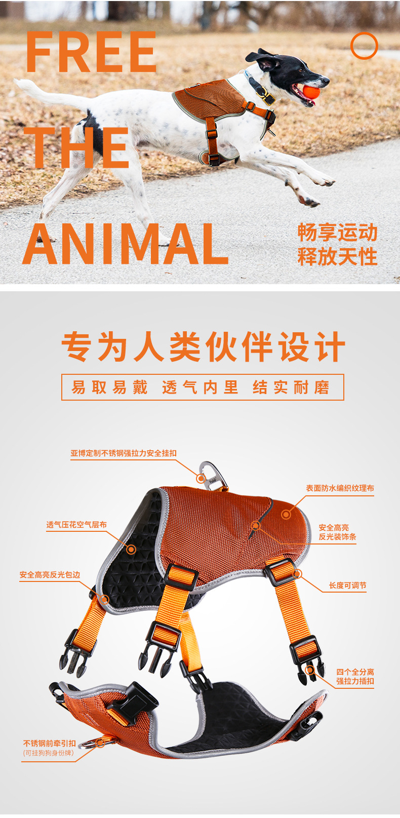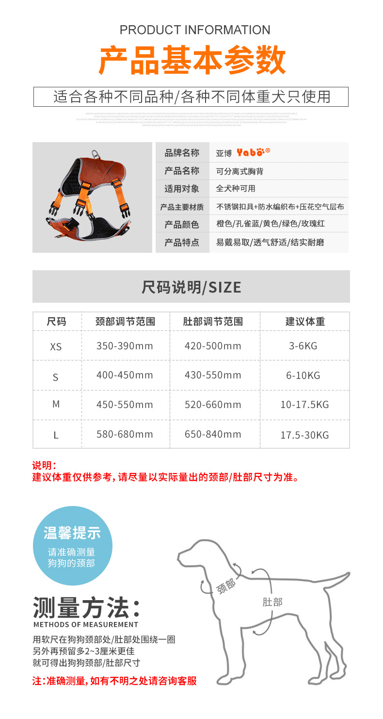 宠物胸背带 橘色